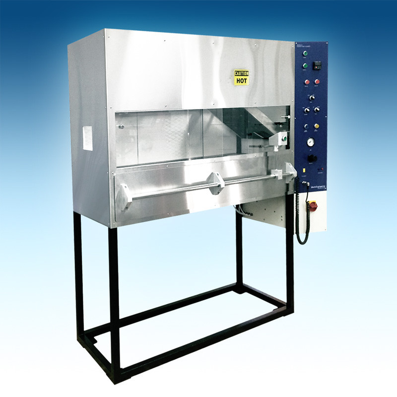 - La cámara de prueba de paneles radiantes está hecha de acero inoxidable y con una placa refractaria interior de 0,5 pulgadas.